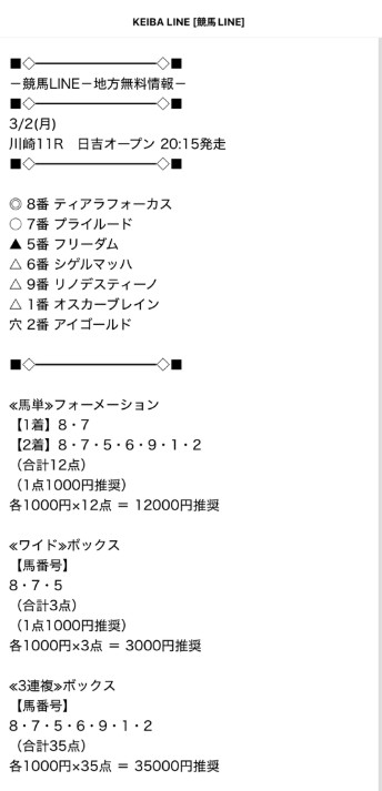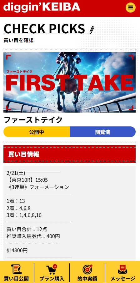 参加日や買い目などの詳細は画像で添付しました