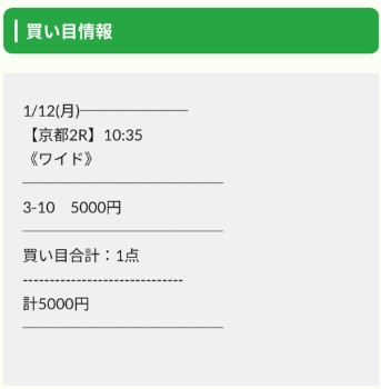 1月12日(月)3鞍提供されて2鞍的中の的中率66.6%