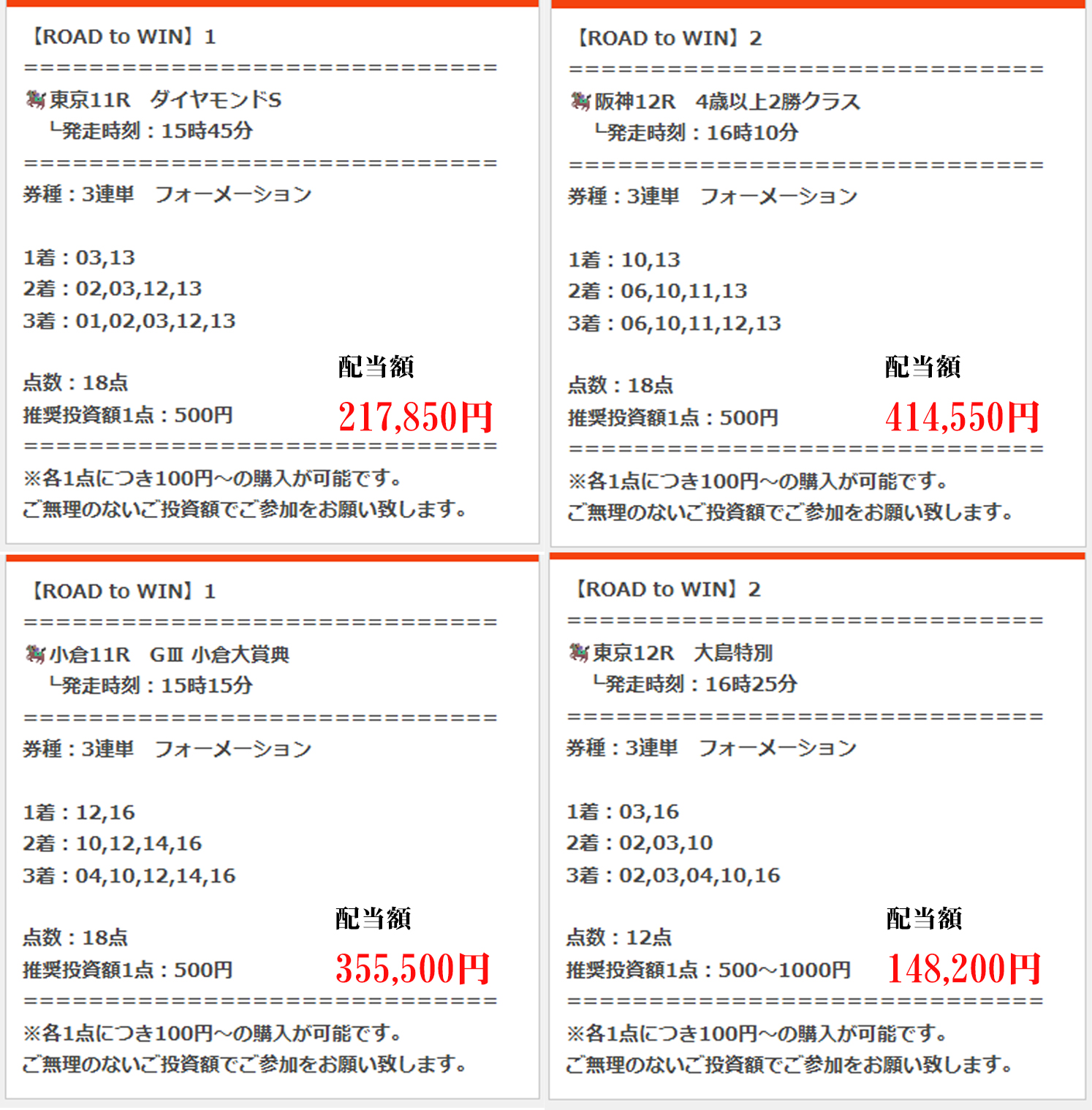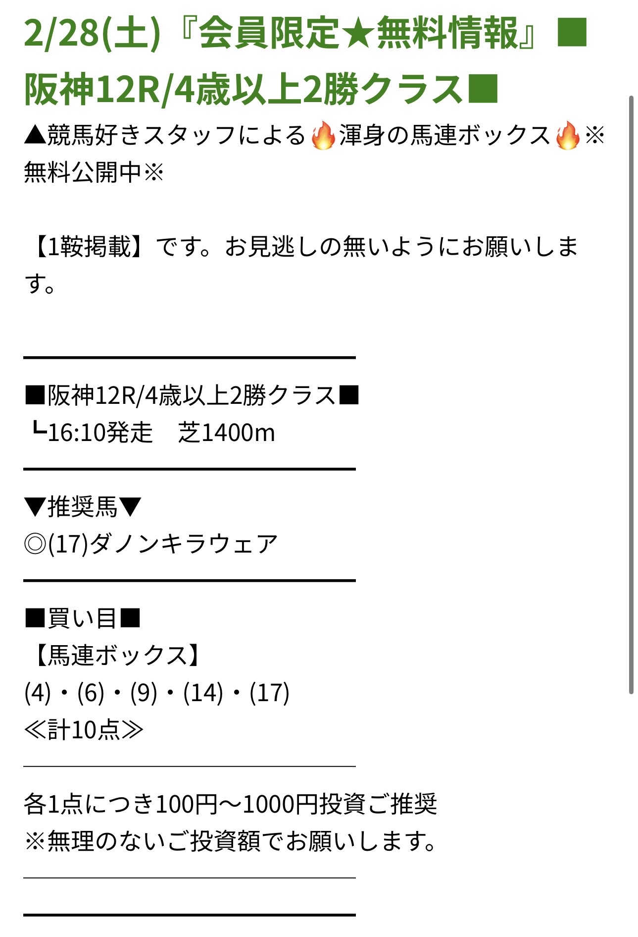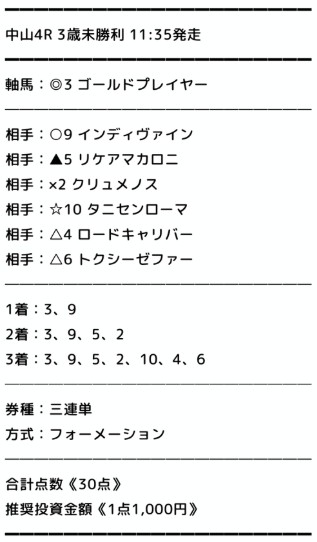 買い目画像4鞍分まとめて載せておきます!参考にして下さい!