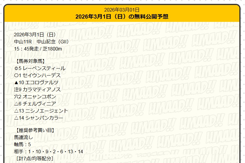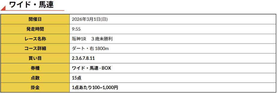 OmL2088さん2月28日(土)阪神7Rワイド無料予想的中