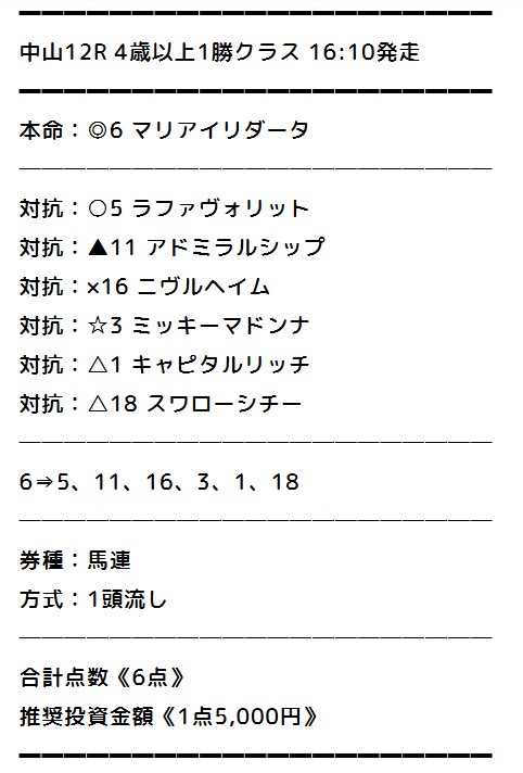 ちなみに一番悔しかったのは日曜日の中山11Rで