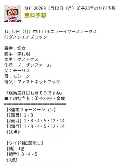 15日(木)の初代女性予想師集団の無料予想に参加をしたら
