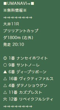 この日の無料予想は大井11Rの品川OP