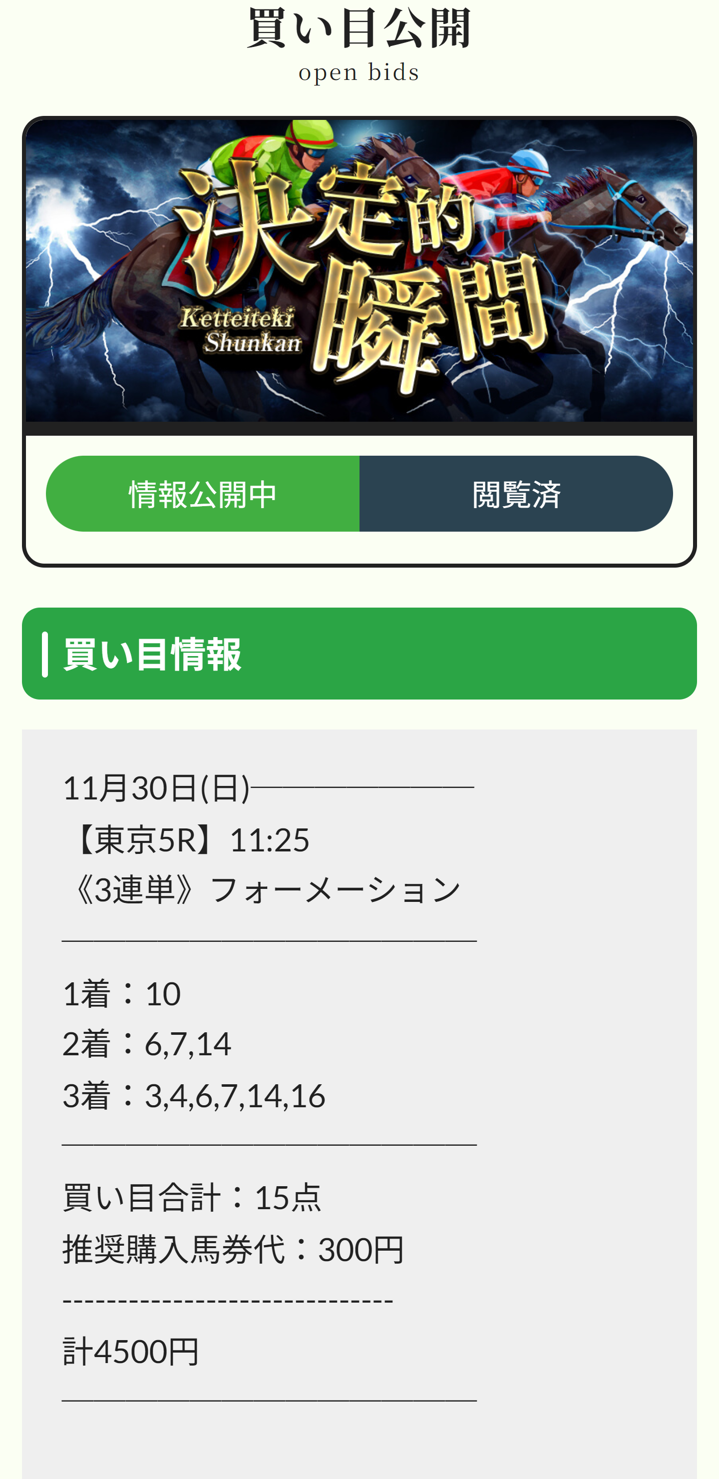 私は買い目点数1点を的中させるサイトが凄いと思ってます。
