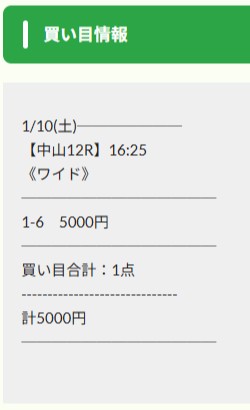 1月10日(土)の無料予想でえぶりが魅せた中山最終レースの買い目点数1点勝負