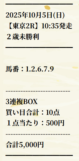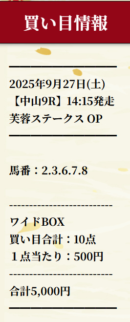 その中で6日(土)の暁の無料予想は馬券代5000円で