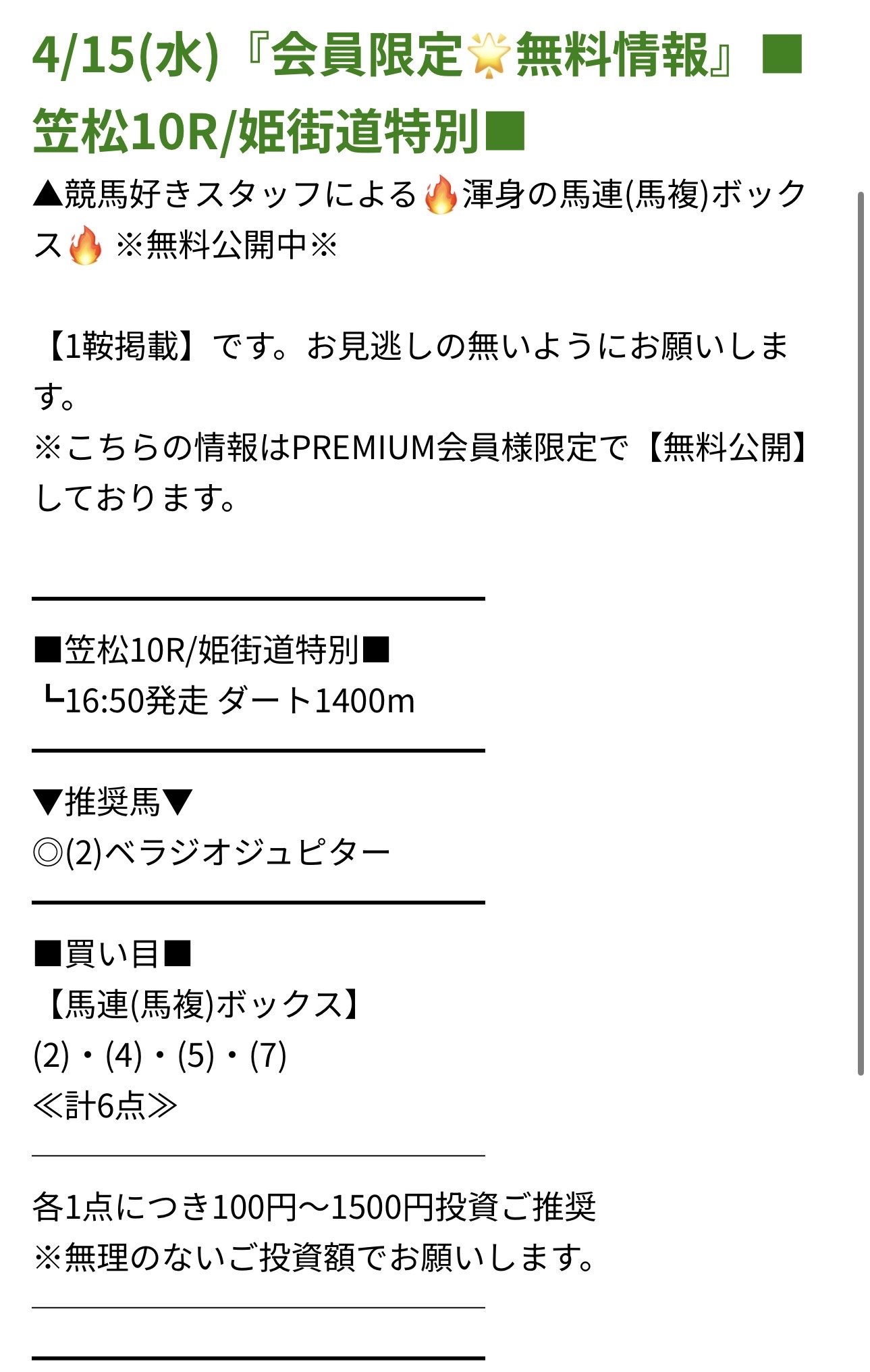 4月15日(水)最終レース特化型の無料予想提供サイト