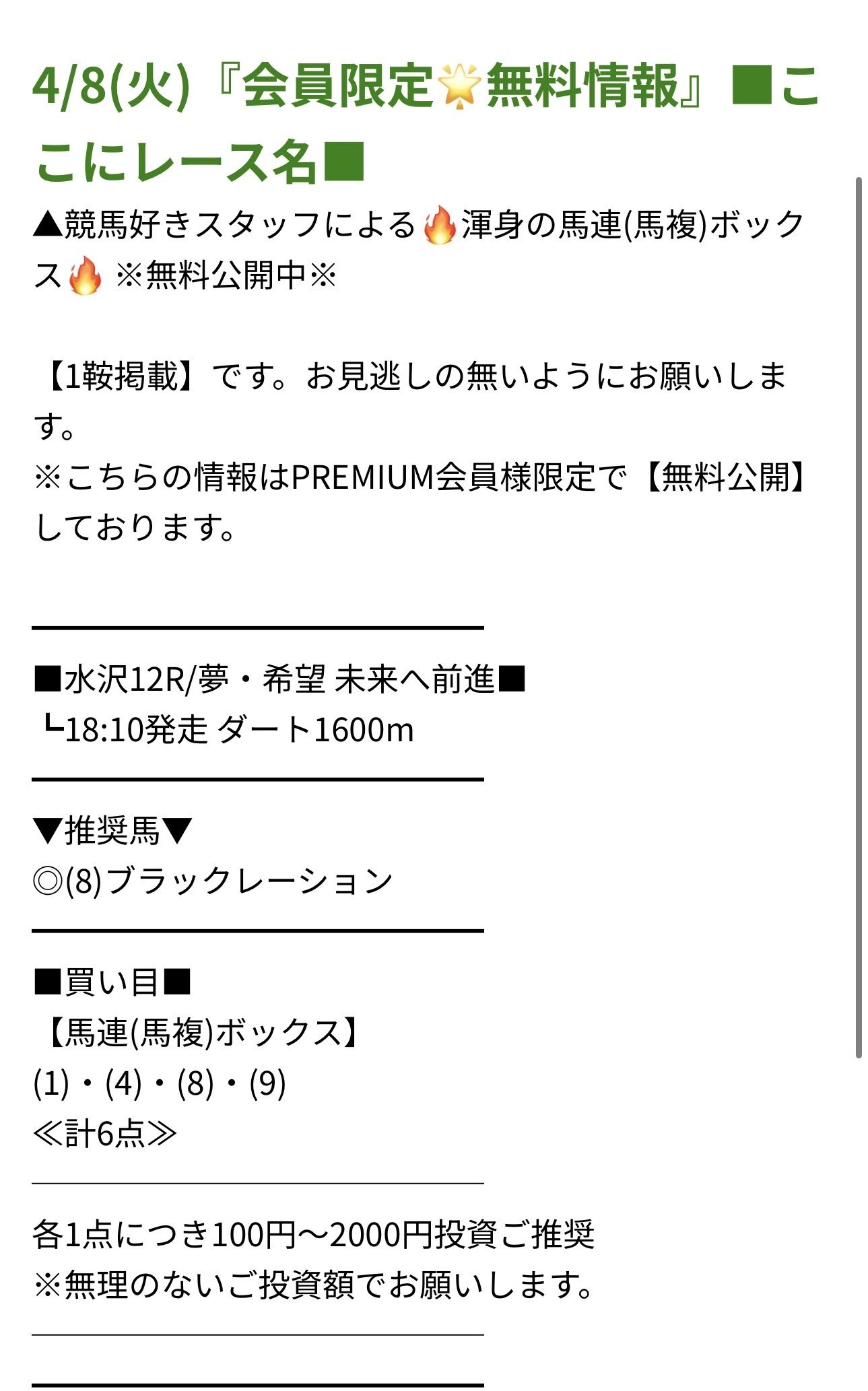 馬帝国管理人のメルマガやラインってかなり信頼度の高い情報を提供してくれるのでかなり信頼しています!