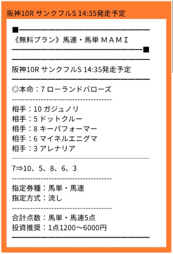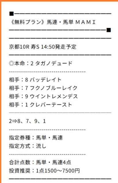 無料予想買い目点数1点で単複ダブル的中