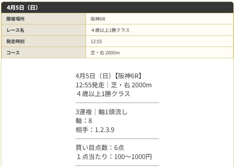 派手な一撃ではなくても、少ない頭数のレースでちゃんと人気薄を混ぜて取れるサイトは信用できます。