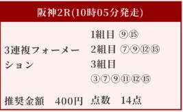 阪神2R三連複で万馬券!
