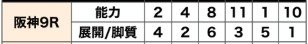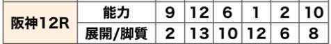 能力表だけ見れば、阪神9Rは7、10、3、4、6あたりに目が行きます。