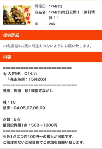 14日(水)の地方無料予想大井9Rで