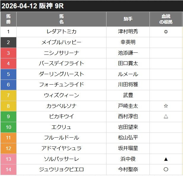 4月12日の阪神9Rは、あとから結果だけ見ても十分すごいんですけど、買い目画像まで見ると余計にヤバいですね。