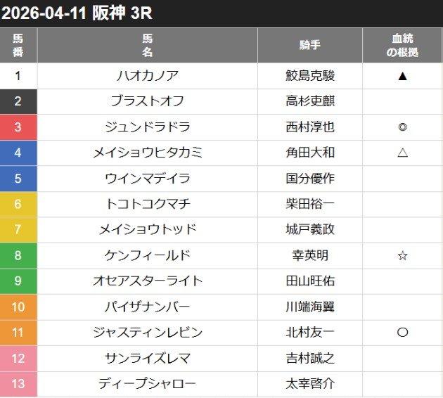 しかも無料予想では、1、3、6、8、13を血統の根拠つきで出していて、結果は3-1-6。