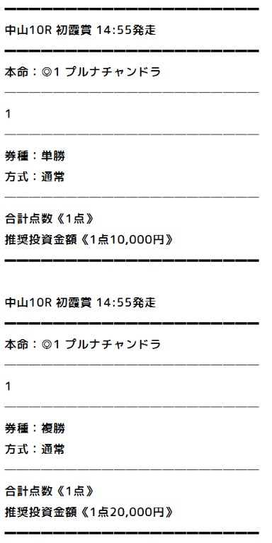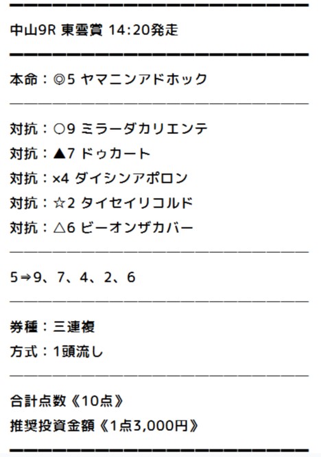 24日(土)の無料予想でも単複の買い目点数1点で4万5000円的中