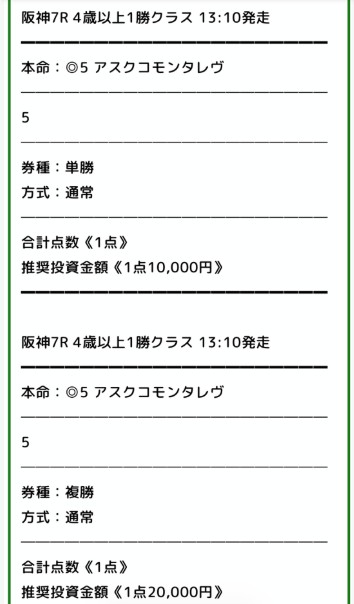 ピッタリの無料予想で勝負出来るからかなりいい!しかもどの無料予想も高配当的中しているので使いやすいと思います!