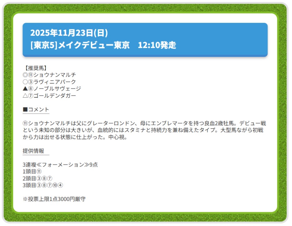 11月23日(日)も無料予想買い目点数9点で三連複的中