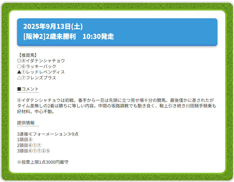 31日(日)も9月もターフビジョンの無料予想に期待しちゃいます!